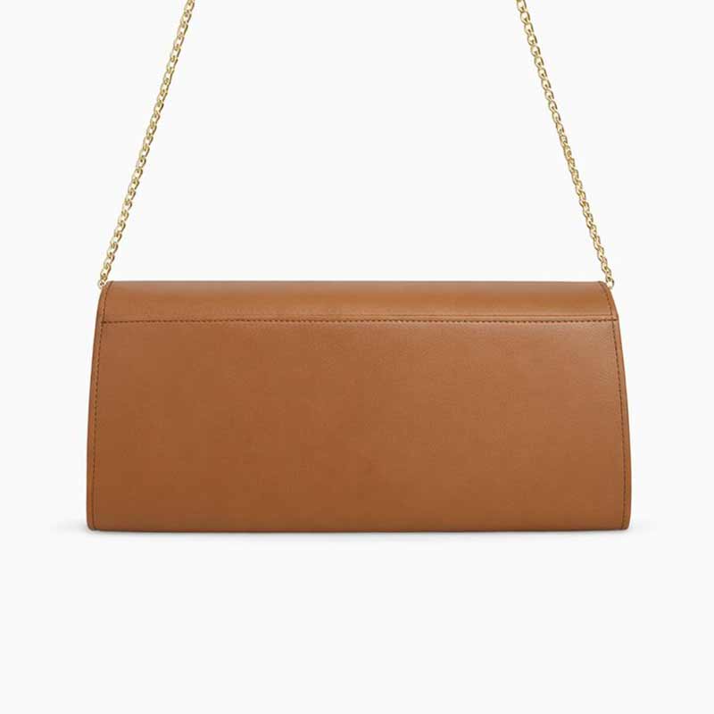 Clutch raffinata in pelle dal design minimal ed elegante. Dotata di sottile tracolla a catena dorata, è perfetta per occasioni speciali, cerimonie ed eventi serali. Capiente e versatile, può essere indossata a spalla oppure portata come pochette per completare con stile qualsiasi outfit.