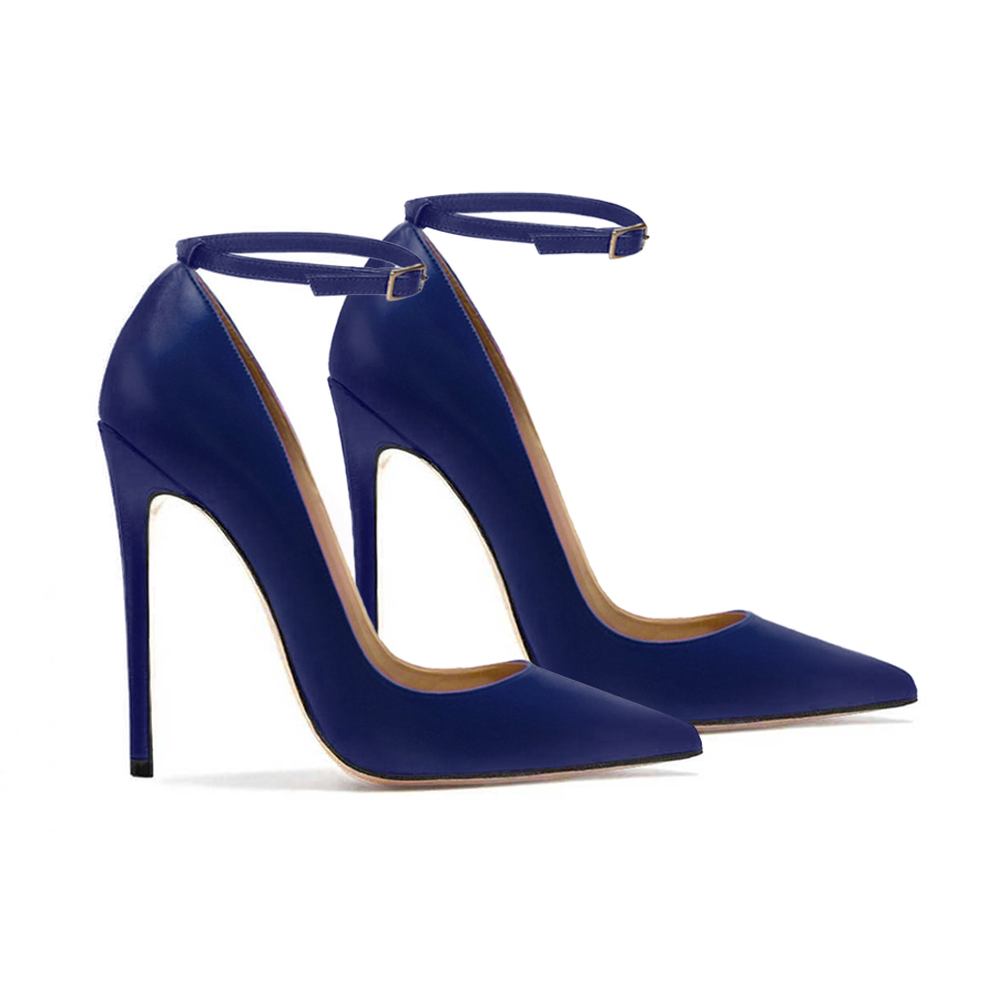 Décolleté pelle blu notte. Cinturino caviglia.