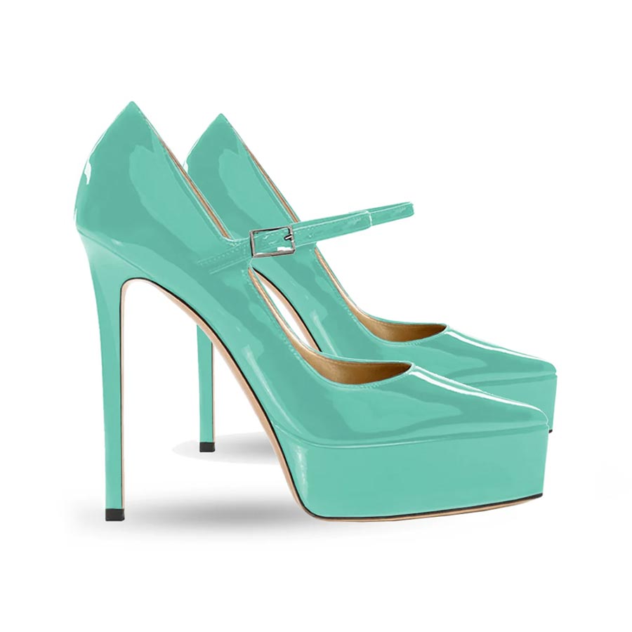 Comoda Décolleté con plateau in vernice tiffany con  cinturino.