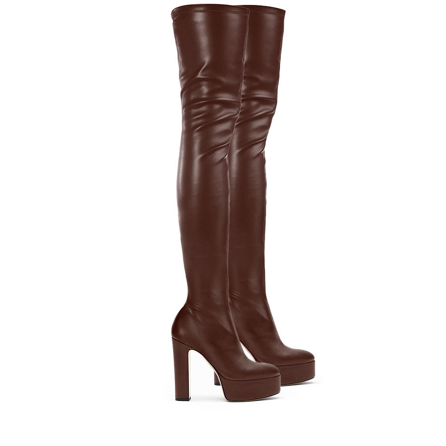 Stivale a punta tonda in pelle testa di moro elasticizzata.