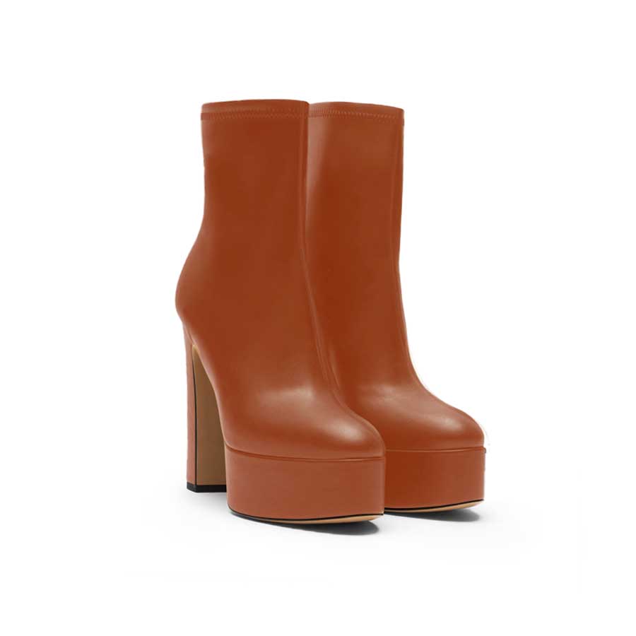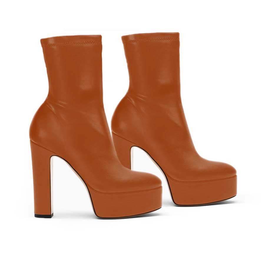 Stivaletto a punta tonda in pelle cognac elasticizzata.