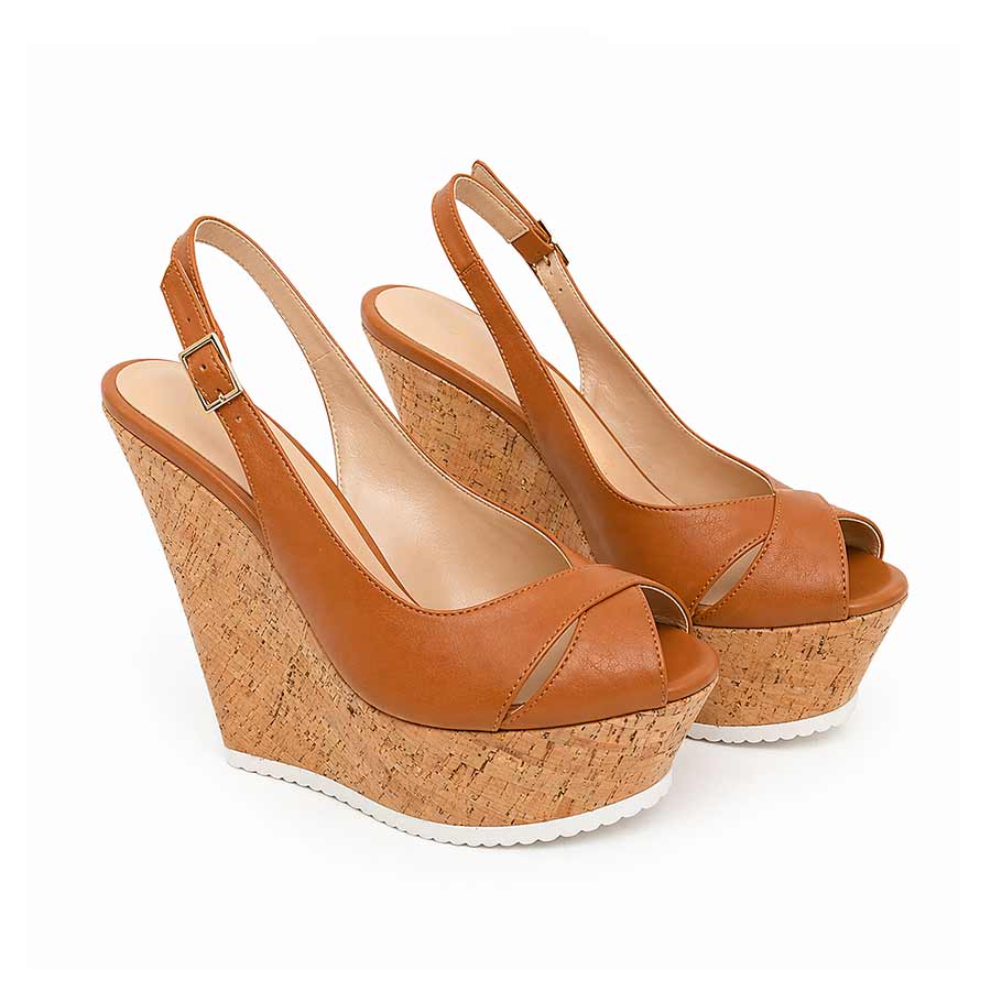 Zeppa Décolleté pelle cognac/ sughero – cod. 165704